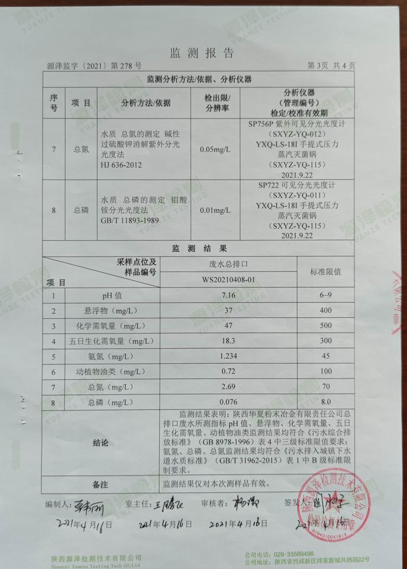 2021年4月16日環(huán)境監(jiān)測(cè)報(bào)告