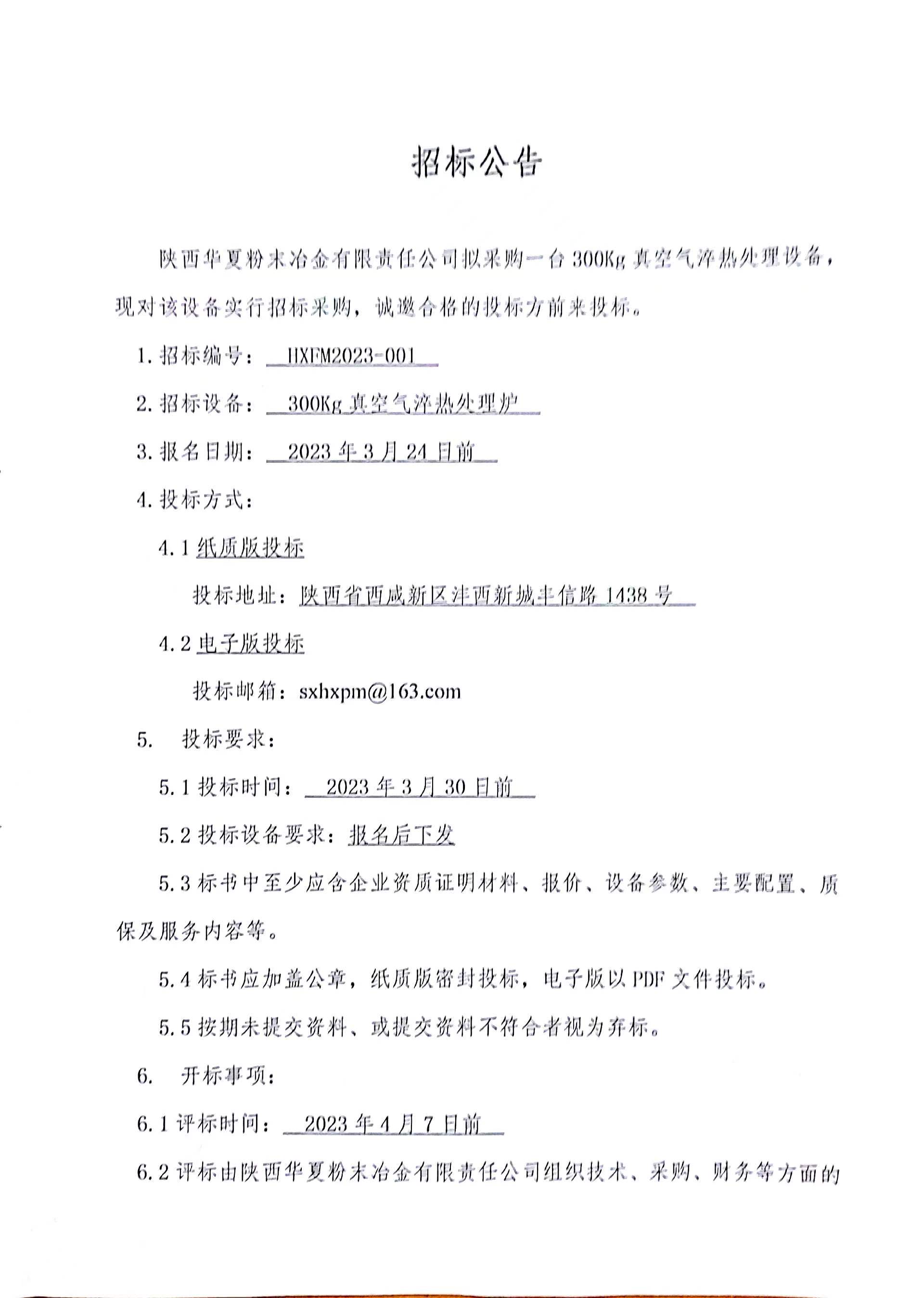 陜西華夏粉末冶金有限責任公司廢舊設(shè)備處置公告