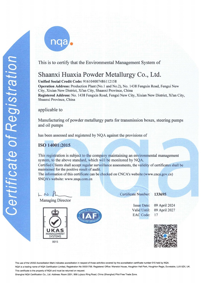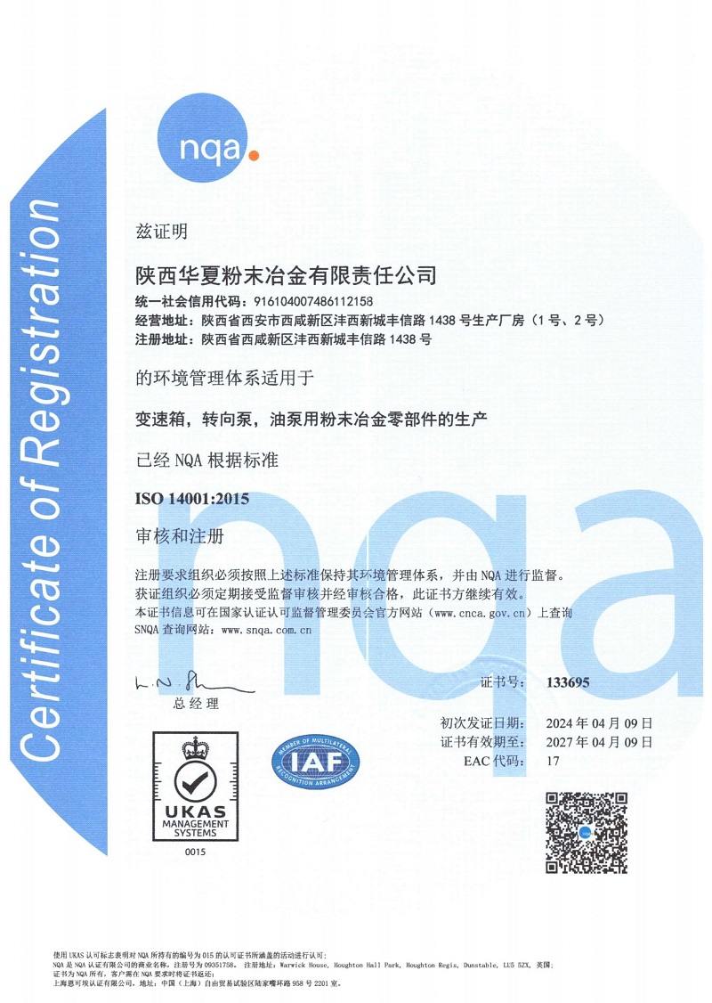為進(jìn)一步規(guī)范公司業(yè)務(wù)流程,形成標(biāo)準(zhǔn)化經(jīng)營(yíng)、規(guī)范化管理模式,華夏公司從去年9月底開展導(dǎo)入ISO14001:2015環(huán)境管理體系,于2024年4月9日順利通過認(rèn)證審核并取得證書。