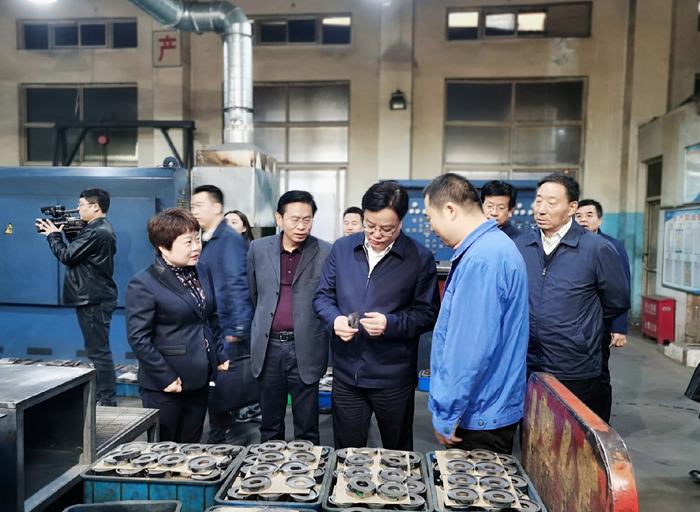 省機(jī)械院黨委書記、院長王云平、華夏公司總經(jīng)理左鵬軍、副總經(jīng)理?xiàng)盥敱蟮葞ьI(lǐng)調(diào)研組一行參觀了公司壓制成型車間、燒結(jié)生產(chǎn)車間及精加工車間,并就公司生產(chǎn)經(jīng)營、市場開拓、新品研發(fā)、技改環(huán)保等方面情況進(jìn)行了匯報(bào)。汪文展主席詳細(xì)詢問了公司粉末冶金生產(chǎn)流程、新技術(shù)新產(chǎn)品研發(fā)、市場配套客戶及三季度生產(chǎn)經(jīng)營運(yùn)行情況。汪文展主席強(qiáng)調(diào),華夏公司要緊抓產(chǎn)品研發(fā)技術(shù)前端優(yōu)勢,克服疫情及外部環(huán)境影響,緊抓當(dāng)前市場發(fā)展機(jī)遇,四季度力爭產(chǎn)業(yè)經(jīng)濟(jì)發(fā)展再上新臺(tái)階。調(diào)研快結(jié)束時(shí),汪主席細(xì)致詢問公司在后續(xù)發(fā)展上存在那些問題或困難需要解決。院長王云平表示,華夏公司目前正處于發(fā)展爬坡期,公司將在設(shè)備技改提升及新品研發(fā)上下大功夫,希望市、區(qū)工業(yè)及科技部門在政策扶持和項(xiàng)目資金上能給予公司發(fā)展助力。汪主席表示,市區(qū)各部門將會(huì)大力扶持華夏公司粉末冶金產(chǎn)業(yè)發(fā)展,持續(xù)為企業(yè)發(fā)展保駕護(hù)航。